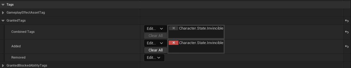 - 기간형 게임플레이 이펙트는 유효 기간동안 태그와 같은 상태를 가질 수 있음