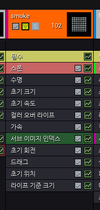 이 모듈들은 드래그앤 드랍으로 순서를 바꾸거나 다른 Emitter로 옮길 수도 있으며, 각 모듈이 읽는 입력 상태가 이전 모듈이 덮어쓴 결과를 그대로 받기 때문에 모듈의 배치 순서는 굉장히 중요합니다.